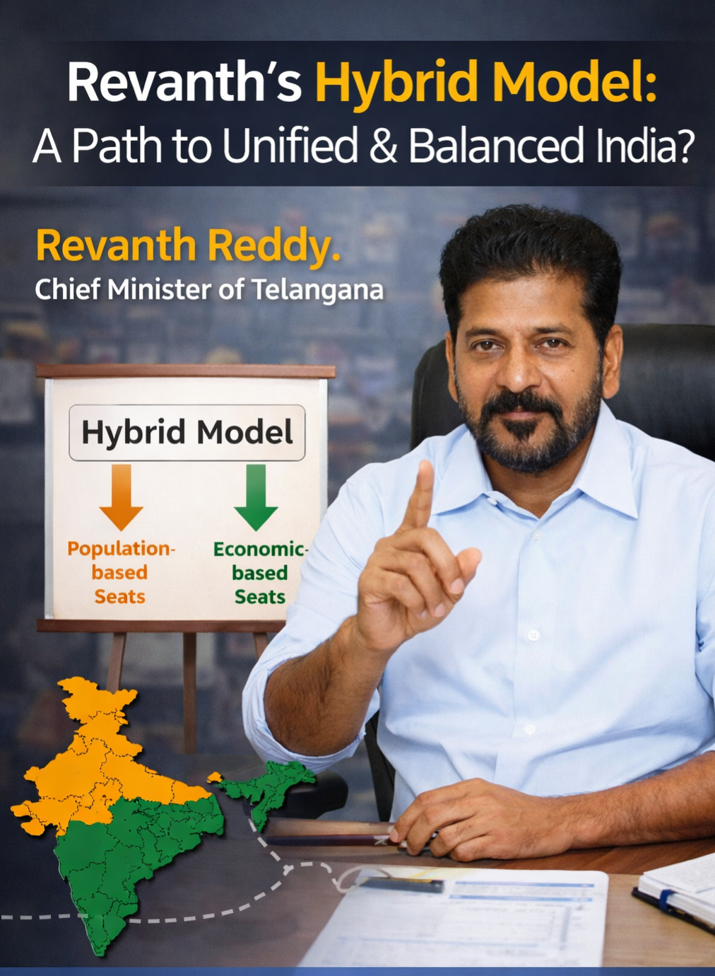 దేశంలో లోక్సభ సీట్ల పునర్వ్యవస్థీకరణ (డీలిమిటేషన్) అంశం మరోసారి జాతీయ స్థాయిలో చర్చకు దారితీస్తోంది. ఈ నేపథ్యంలో తెలంగాణ ముఖ్యమంత్రి Revanth Reddy ప్రతిపాదించిన “హైబ్రీడ్ మోడల్” దేశ సమాఖ్య వ్యవస్థను బలోపేతం చేసే కీలక ఆలోచనగా నిలుస్తోంది. ఇది కేవలం ప్రాంతీయ ప్రయోజనాలకు పరిమితం కాకుండా, దేశవ్యాప్తంగా సమతుల్య అభివృద్ధి, సమాన రాజకీయ ప్రాతినిధ్యం, మరియు బాధ్యతాయుత పాలనను ప్రోత్సహించే దిశగా రూపొందించబడింది.