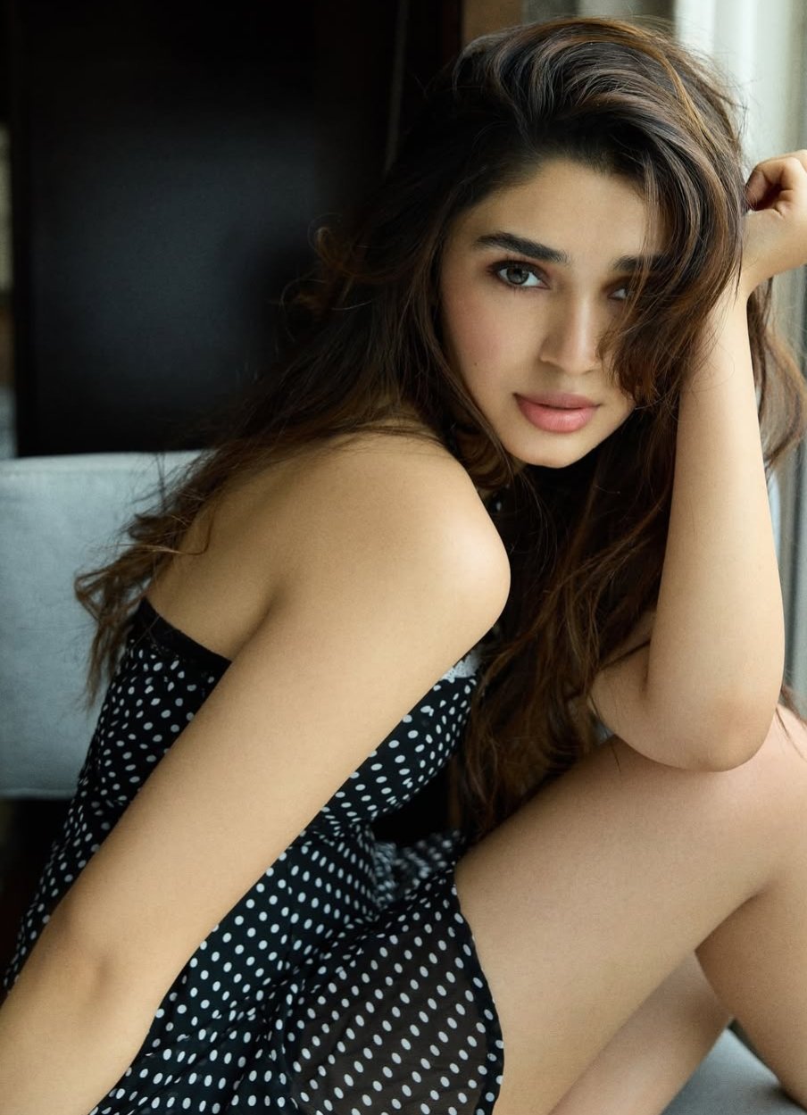 బ్లాక్ అండ్ వైట్ పోల్కా డాట్ హాల్టర్ నెక్ మినీ డ్రెస్లో కృతి ఎంతో అందంగా కనిపిస్తోంది. ఫెయిర్ లుక్, సింపుల్ చిరునవ్వుతో కుర్రకారు గుండెల్ని గిల్లుతున్న ఈ బ్యూటీ పాల నురుగు దేహశిరులను అందంగా ఎలివేట్ చేసేందుకు తపిస్తున్న తీరు ఆకట్టుకుంటోంది.