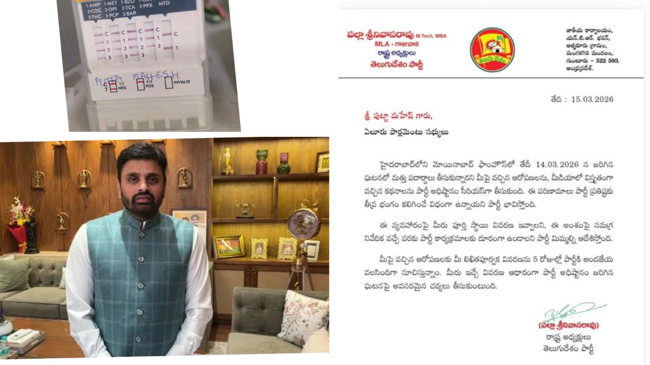 తెలంగాణలో సంచలనం సృష్టించిన మొయినాబాద్ ఫామ్హౌస్ డ్రగ్స్ కేసు రాజకీయంగా పెద్ద దుమారం రేపుతోంది. ఈ ఘటనలో టీడీపీ ఎంపీ పుట్టా మహేష్ యాదవ్ పేరు వెలుగులోకి రావడంతో టీడీపీ అధిష్టానం సీరియస్గా స్పందించింది. ముఖ్యమంత్రి నారా చంద్రబాబు నాయుడు ఆదేశాల మేరకు పార్టీ రాష్ట్ర అధ్యక్షుడు పల్లా శ్రీనివాస్ ఈ ఘటనపై పుట్టా మహేష్కు షోకాజ్ నోటీసులు జారీ చేశారు.