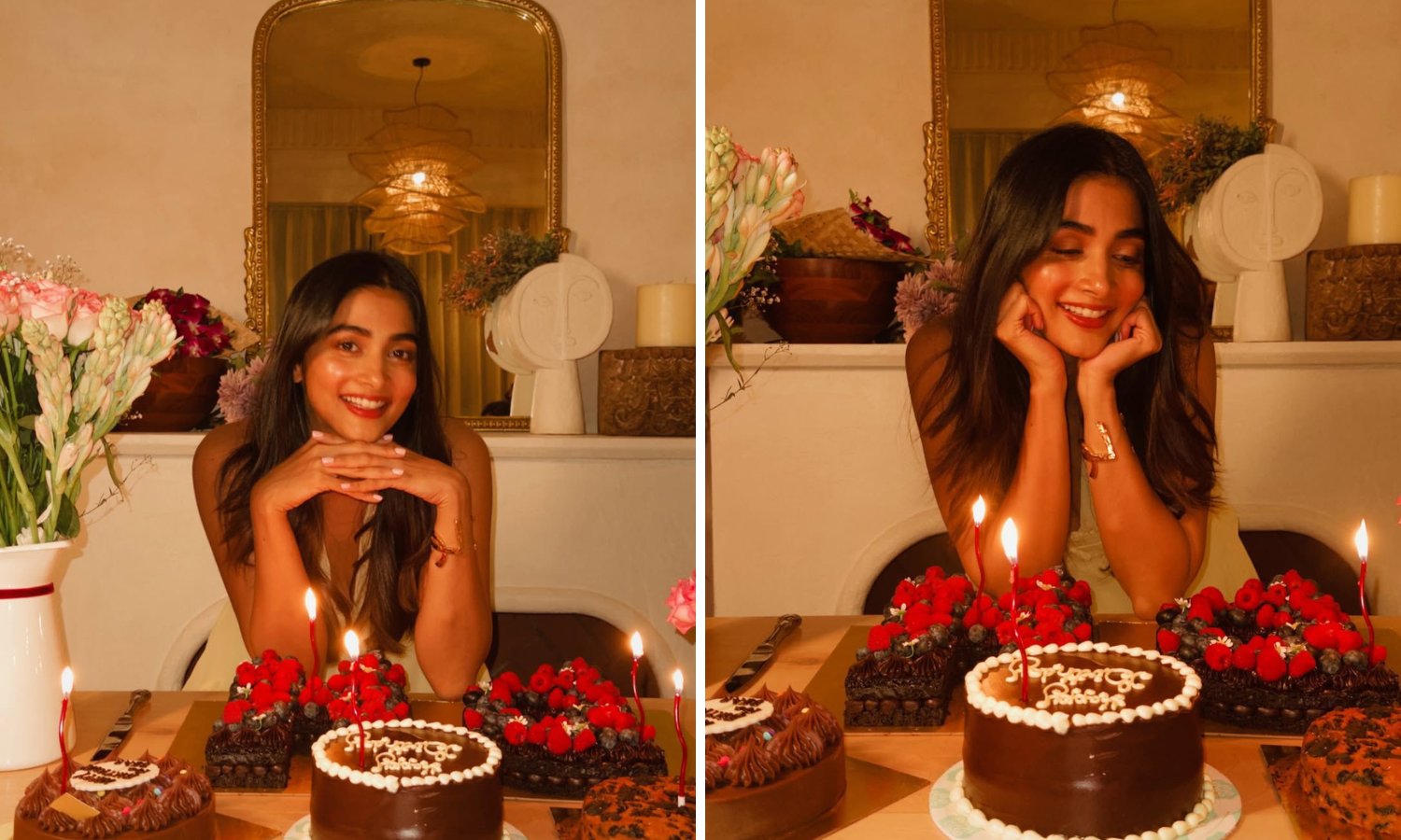 అందులో స్లీవ్ లెస్ వైట్ బాడీ కాన్ డ్రెస్ ధరించిన ఈమె అందంగా కేకు ముందు ఫోటోలకు ఫోజులిచ్చింది. పైగా ఈమె పేరులోని షార్ట్ అక్షరాలు పిహెచ్ (పూజా హెగ్డే) అక్షరాలతో చాలా అందంగా డిజైన్ చేసిన కేక్ టేబుల్ పై ఉండగా.. ఆ కేకును చూస్తూ మురిసిపోతున్నట్టు ఫోటోలు పంచుకుంది. ప్రస్తుతం బుట్ట బొమ్మ షేర్ చేసిన ఈ ఫోటోలు చాలా అందంగా, ఆకర్షణీయంగా కనిపిస్తున్నాయి. మొత్తానికైతే బుట్ట బొమ్మ పుట్టినరోజు వేడుకలకు సంబంధించిన ఫోటోలు సోషల్ మీడియాలో వైరల్ అవ్వడంతో అమ్మడికి సెలబ్రిటీలు, అభిమానులు శుభాకాంక్షలు తెలియజేస్తున్నారు. ఈ ఫోటోలు చూసి లవ్ ఎమోజీలతో పాటు ఫైర్ ఎమోజీలను కూడా షేర్ చేస్తున్నారు.
