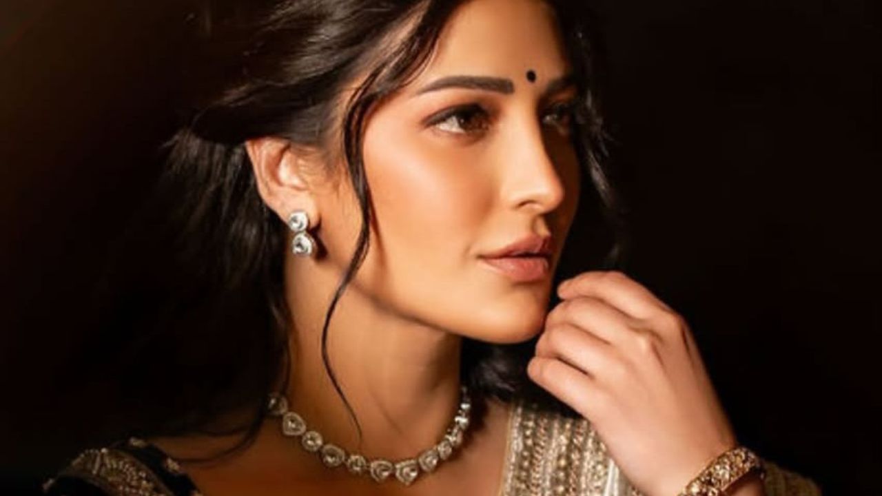 తాజాగా శృతిహాసన్ సిల్వర్ కలర్ శారీలో మెరిసింది.. సిల్వర్ కలర్ శారీ తో బ్లాక్ కలర్ బ్లౌజ్ ని పెయిర్ చేసి, తన లుక్ ని మరింత ఎలిగేంట్ గా మార్చింది.. సిల్వర్ కలర్ శారీ కి లేటెస్ట్ ట్రెండింగ్ లో ఉన్న జరీ బార్డర్ ట్రెడిషనల్ వైబ్ ని తీసుకువచ్చింది.. శృతిహాసన్ చీరలో ఉన్న ఫోటోలు ఆమె లుక్ కి మరింత రిచ్ నెస్ ని యాడ్ చేసాయి. చీర యొక్క సిల్వర్ టోన్ శృతిహాసన్ అందాన్ని రెట్టింపు చేసింది అని ఈ ఫోటోలు చూసిన నెటిజన్లు కామెంట్లు పెడుతున్నారు.. అలా అద్భుతమైన చీరలో కుందనపు బొమ్మలాగా ఉన్న శృతిహాసన్ ఫోటోలు ప్రస్తుతం సోషల్ మీడియాని షేక్ చేయడంతో పాటు ఈమె అందానికి ఎంతోమంది బానిసలైపోతున్నారు.