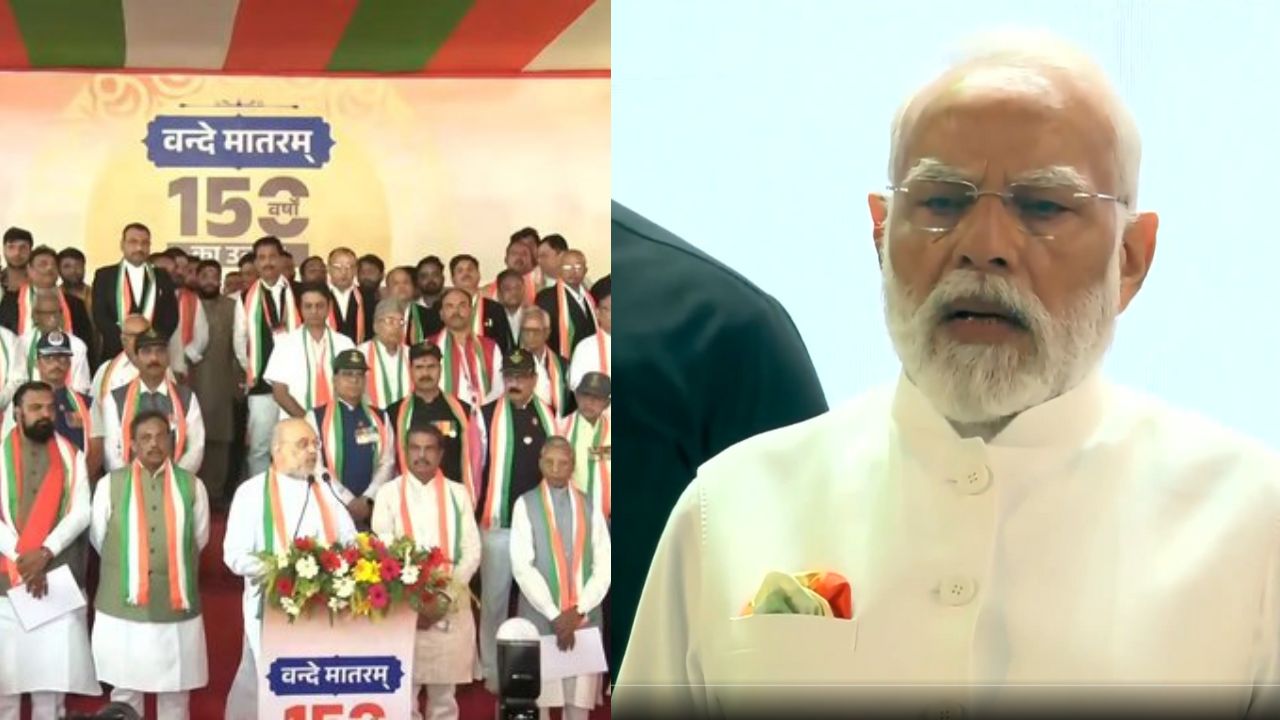 బంకించంద్ర ఛటర్జీ రాసిన ‘వందేమాతరం’ గేయానికి 150 సంవత్సరాలు పూర్తైన నేపథ్యంలో.. ఇవాళ ఉదయం ‘వందేమాతరం’ పూర్తి రూపాన్ని సమూహంగా ఆలపించే కార్యక్రమంలో ప్రధాని మోదీ పాల్గొన్నారు. ఢిల్లీలోని ఇందిరా గాంధీ ఇండోర్ స్టేడియంలో ఈ కార్యక్రమాన్ని నిర్వహించారు.