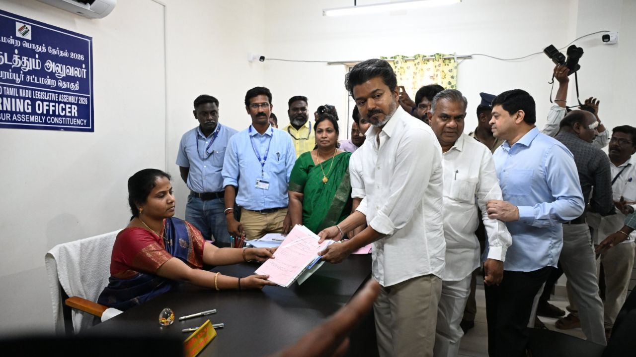 తమిళనాడు రాజకీయాల్లో సినీ స్టార్ ఎంట్రీతో ఆసక్తికర పరిణామాలు చోటుచేసుకుంటున్నాయి. ప్రముఖ నటుడు, టీవీకే అధ్యక్షుడు Vijay అధికారికంగా ఎన్నికల బరిలోకి దిగారు. చెన్నైలోని పెరంబూర్ నియోజకవర్గం నుంచి ఆయన తన నామినేషన్ పత్రాలను రిటర్నింగ్ అధికారికి సమర్పించారు. అంతేకాదు, తిరుచ్చి ఈస్ట్ నియోజకవర్గం నుంచి కూడా పోటీ చేస్తున్నట్లు ప్రకటించారు.